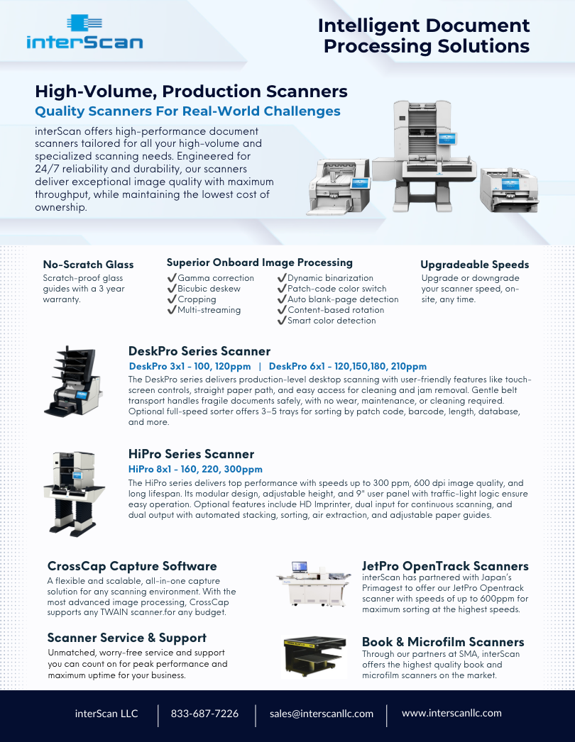 This 1 page overview allows you to get a snapshot of the scanners, software and services interScan has to offer.